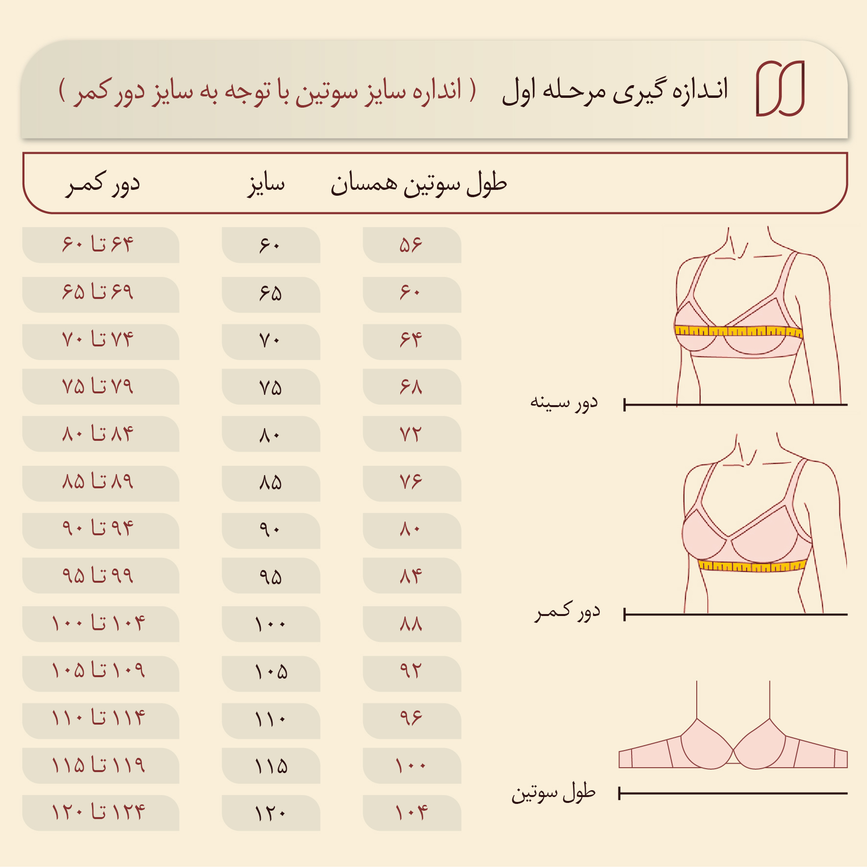 2. محاسبه: اختلاف بین اندازه دور سینه و اندازه زیر سینه به شما کمک میکند تا کاپ مناسب را پیدا کنید.