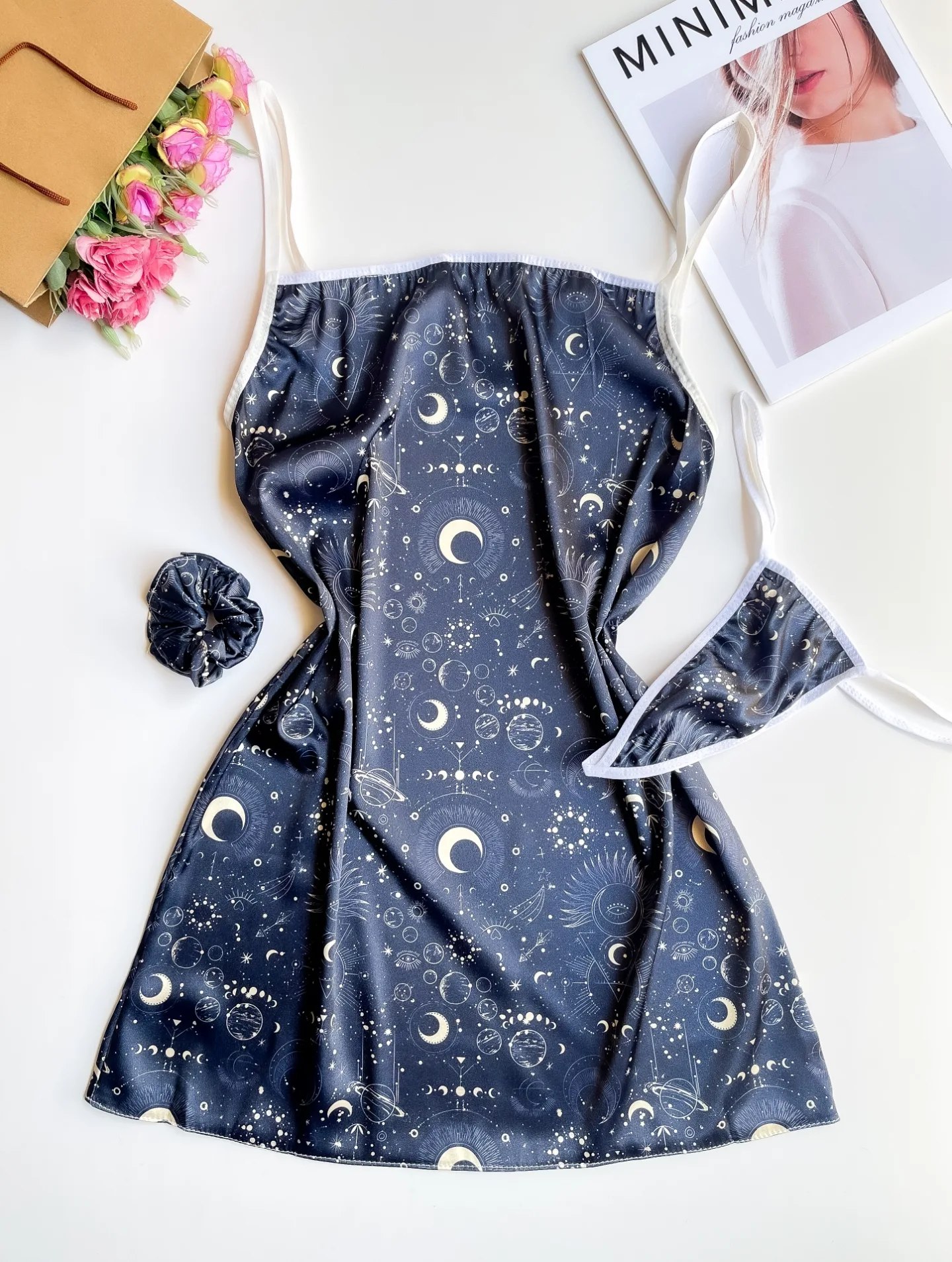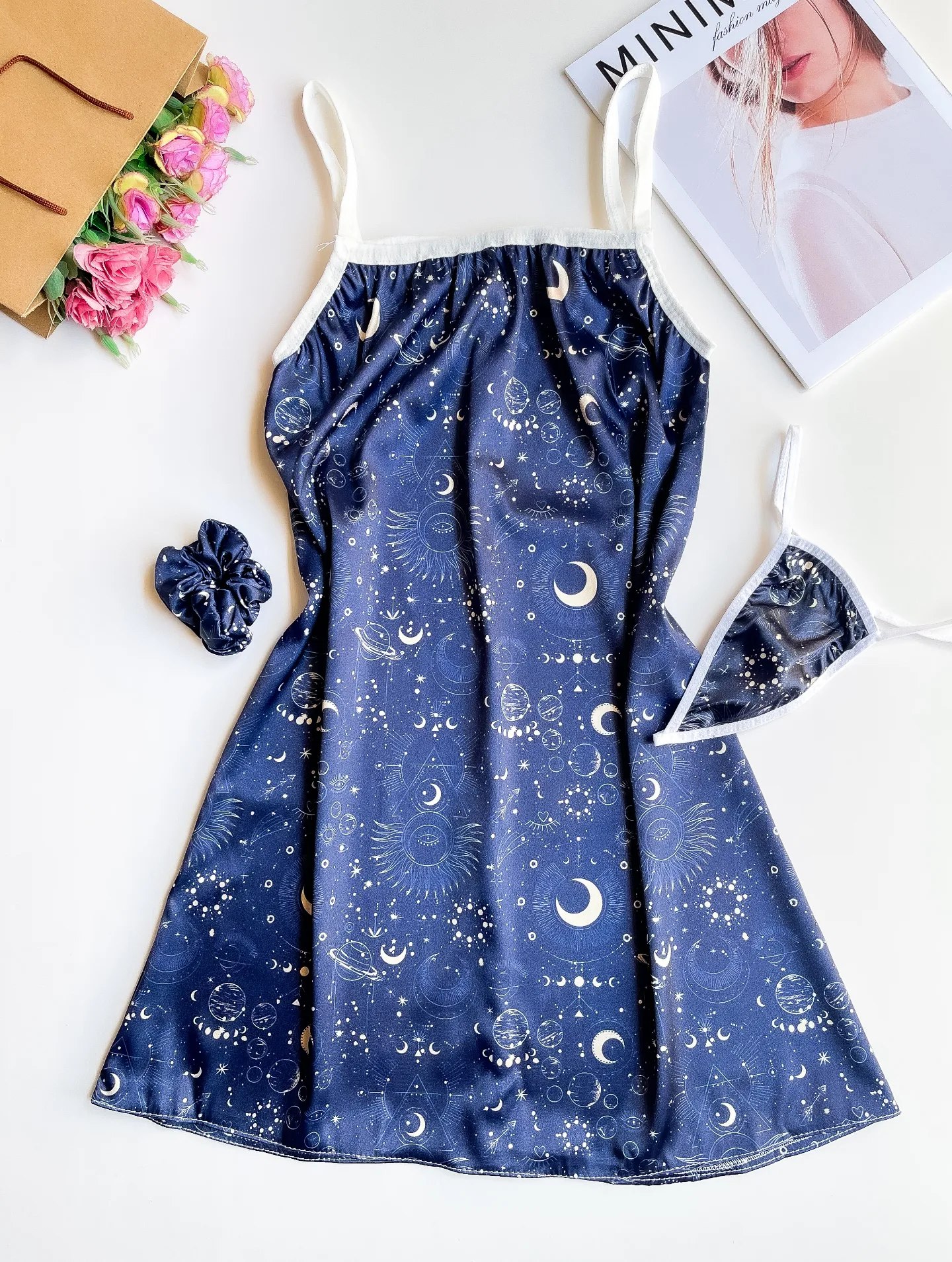 لباس خواب ساتن سه تیکه طرح شب