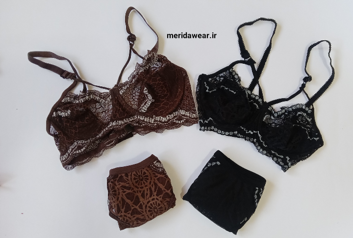 ست شورت سوتین زیر فنردار گیپور دو لایه زیر سوتین یه لایه پارچه کار شده دارای سه قزن دو تایی هارنس دار بغل شورت گیپور کار شده