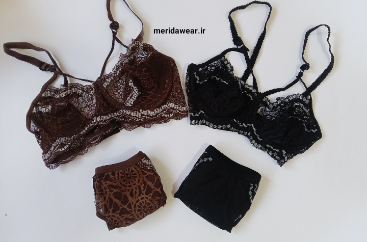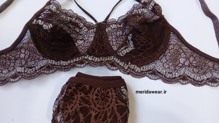 ست شورت و سوتین فنردار گیپور طرح گلدوزی