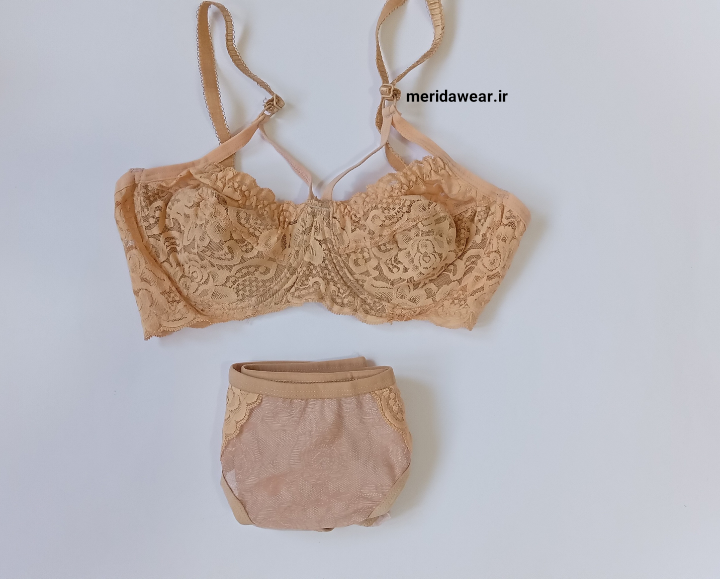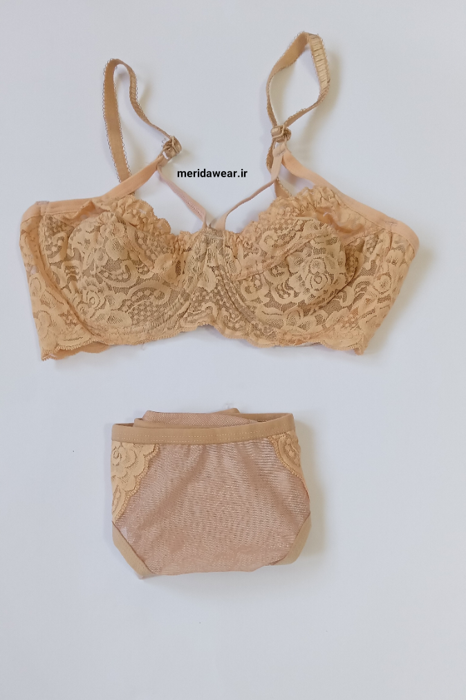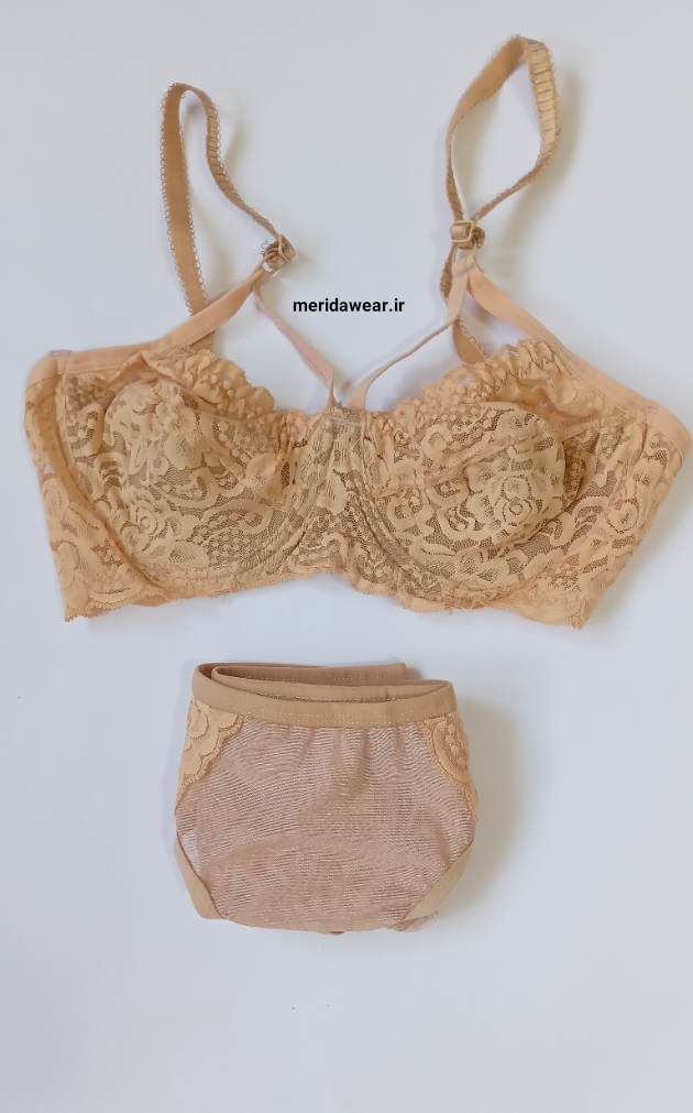 جنس : گیپور فنردار نوع سوتین : رویه گیپوری دو لایه زیر نخ - سه ردیف قزن - بند قابل تنظیم -هارنس دار نوع شورت : اسلیپ فاق نخی دو لایه - جلو گیپور ، پشت پارچه نخی کاپ : B (استاندارد) تولید : ایران