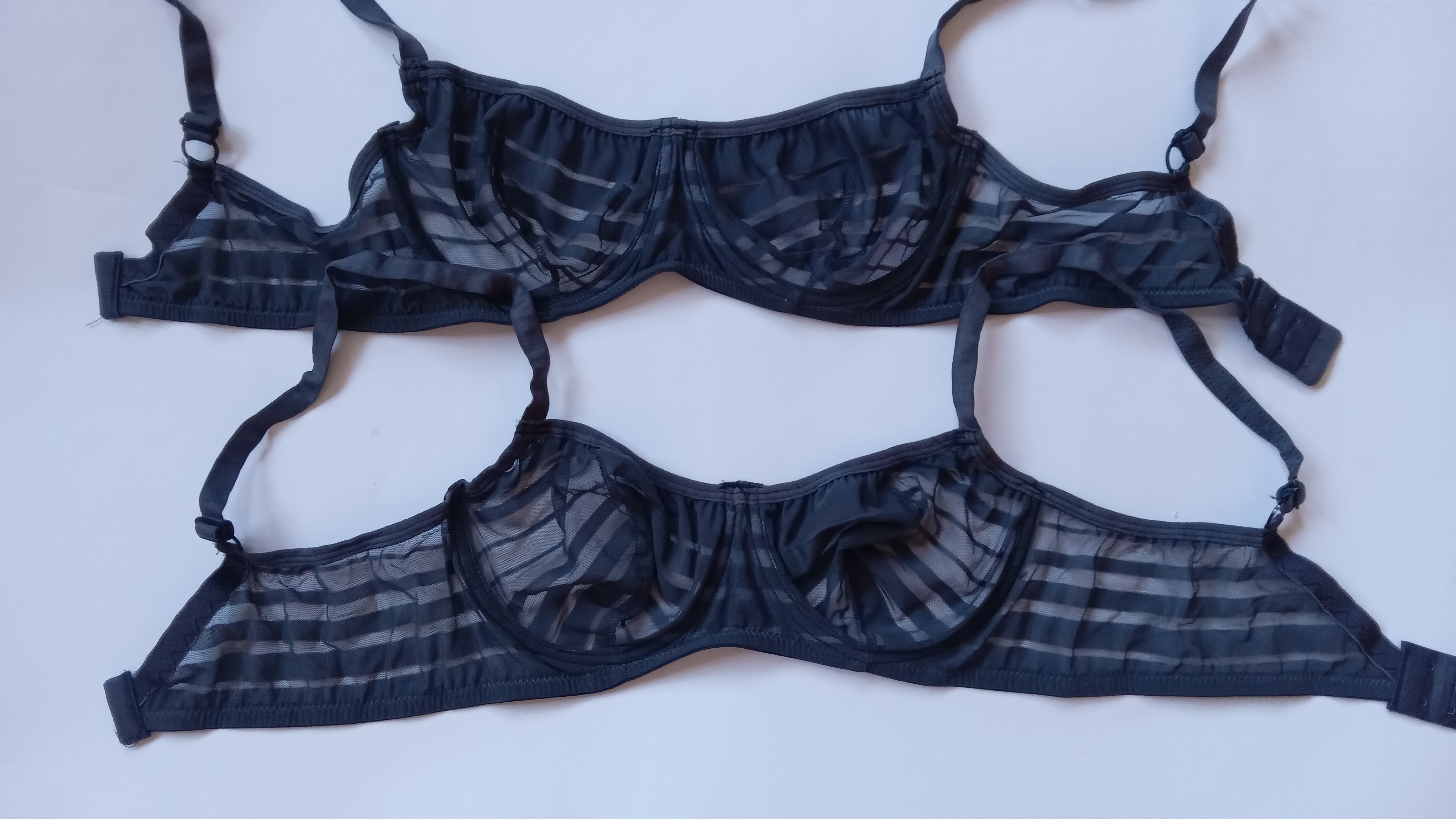 سوتین زیر فنردار جنس حریر طرح راه راه بدون هارنس دارای سه قزن دو تایی قابلیت تنظیم اندازه داره دارای دو رنگ مشکی و طوسی فقط مشکی چهار هارنسه