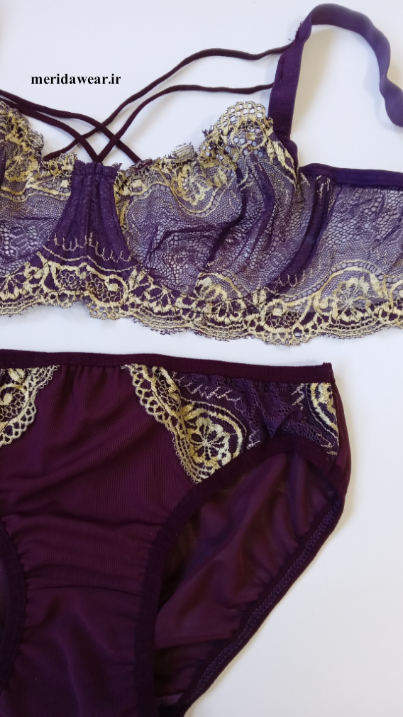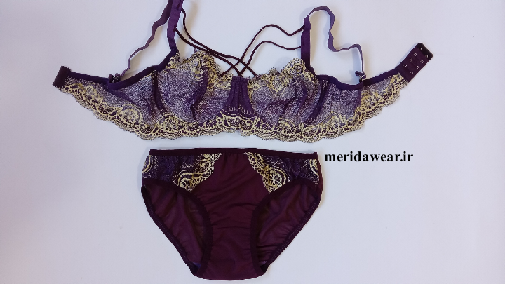 ست شورت و سوتین گیپور گلدوزی بنفش کد ۱۳